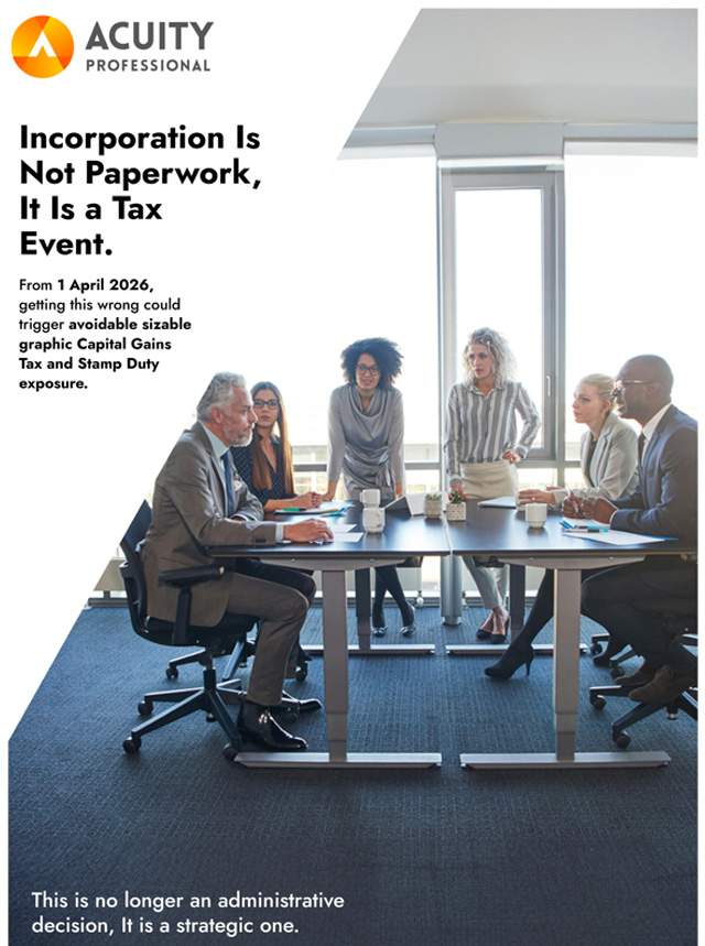 From 1 April 2026, that position changes. Incorporation relief will no longer apply automatically. Instead, claims will need to be made and supported, with HMRC having greater scope to question whether the activity being transferred genuinely constitutes a business for these purposes.